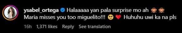 "Halaaaaa yan pala surprise mo ah. Maria misses you too miguelito!!! Huhuhu uwi ka na pls," she said.