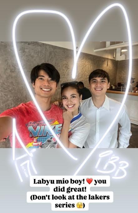 On Mikael's Instagram Stories, he shared a photo with his younger brother and Megan with the caption, "Labyu mio boy! You did great! (Don't look at the Lakers series)."