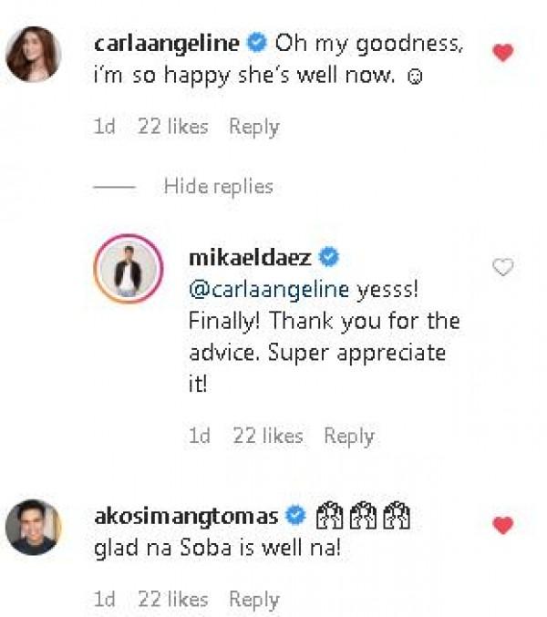 Mikael's cast mates, Carla Abellana and Tom Rodriguez, from Love Of My Life breathed a sigh of relief upon seeing Soba's current condition.