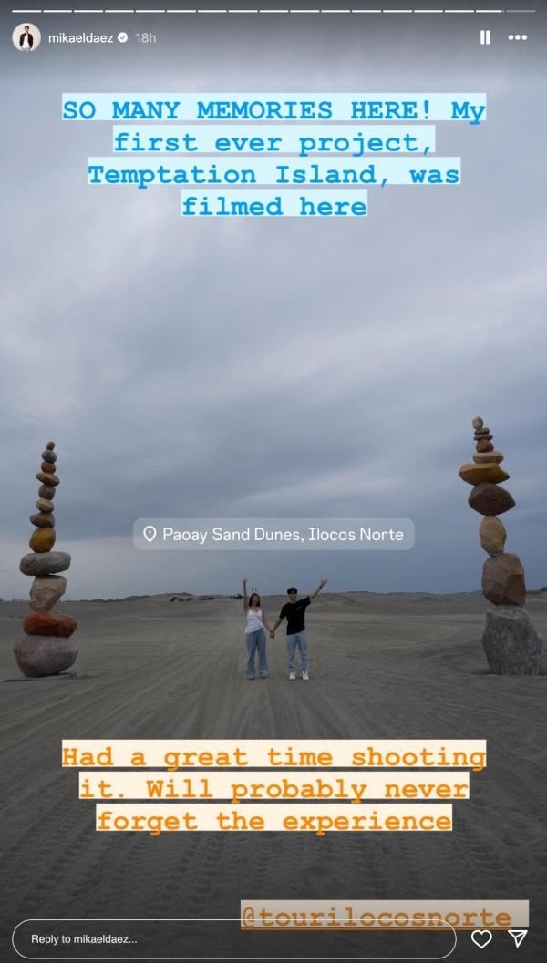 In one of his posts via Instagram Story, Mikael and Megan visited the Paoay Sand Dunes. This was the location of Mik's first ever project 'Temptation Island,' a remake of the hit '80s movie.