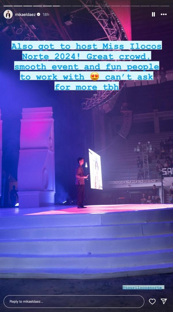 Mikael and Megan traveled to Ilocos Norte, since they were part of the Miss Ilocos Norte 2024 pageant. The Miss World 2013 winner was chosen to be a judge, while Mikael hosted the event.