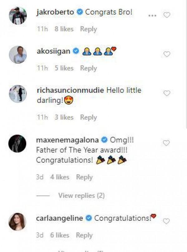 Celebrity friends of the actor, including his Kara Mia co-star Jak Roberto, GMA News anchor Arnold Clavio, and actress Rich Asuncion, gave their well-wishes for the new father-of-two.