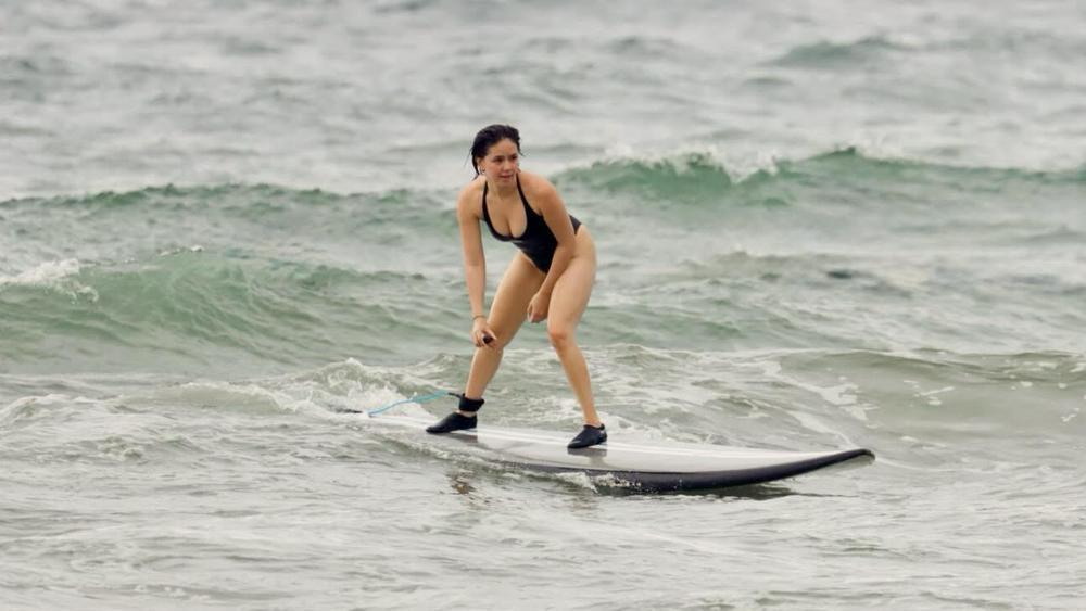 Kapuso actress Mikee Quintos is making the most of her scenic Hawaii vacation, this time by hitting the waves and showing off her surfing skills in Kihei, Maui.