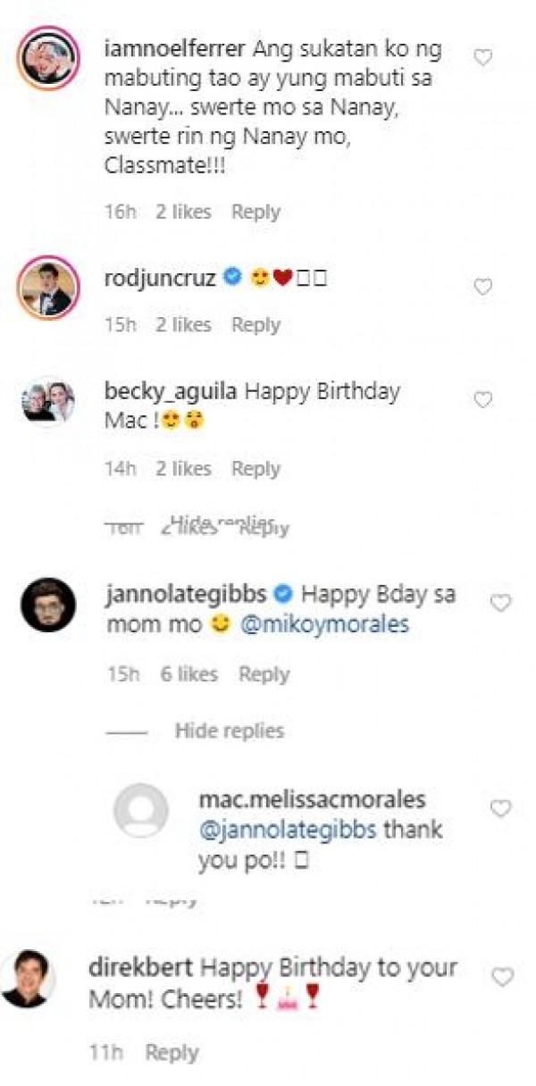 Nakatanggap din ng birthday message ang nanay ni Mikoy mula sa celebrities tulad nina Rodjun Cruz at Janno Gibbs.