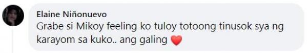 “Grabe si Mikoy feeling ko tuloy totoong tinusok siya ng karayom sa kuko…Ang galing,” komento ng isang netizen.