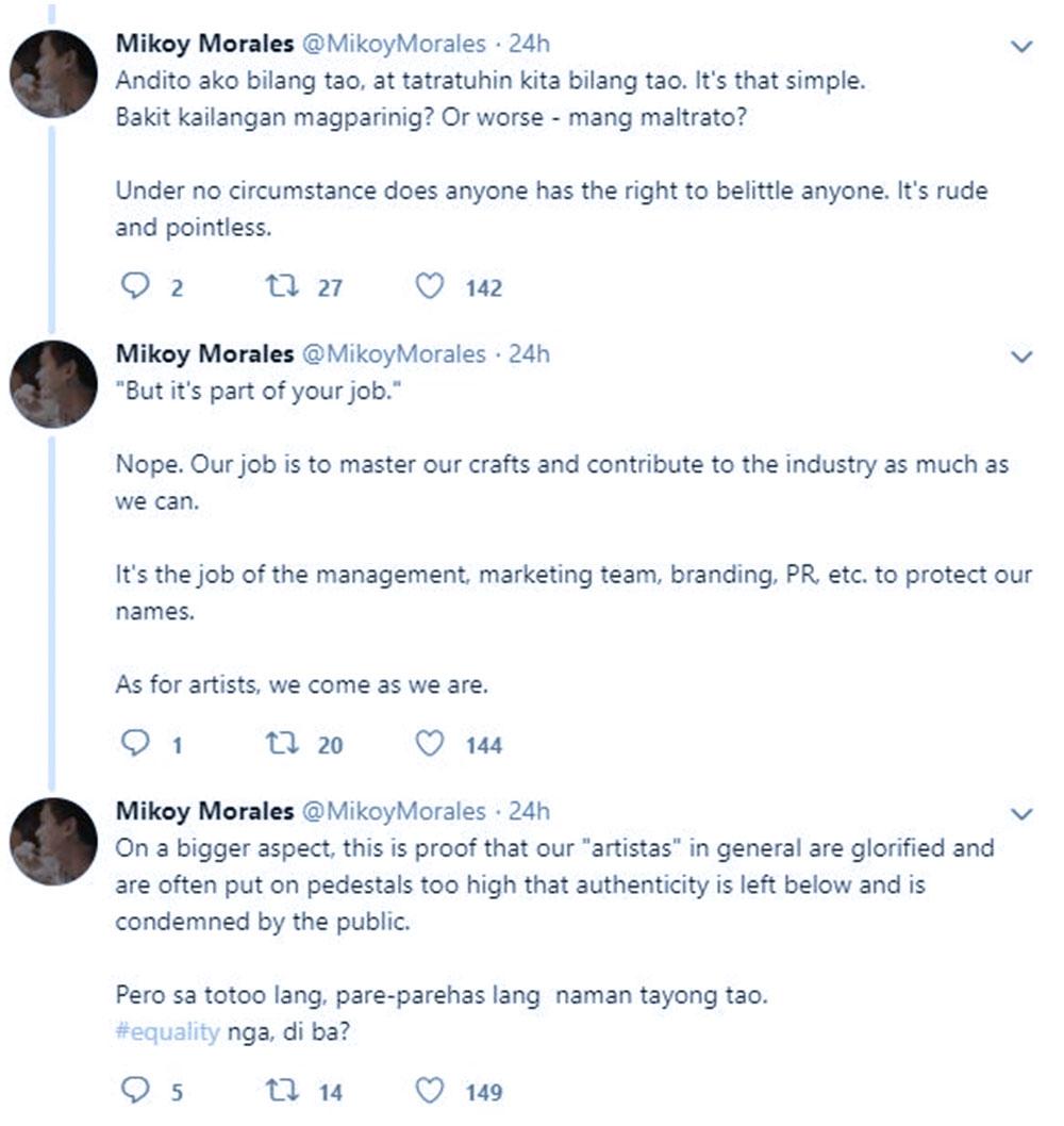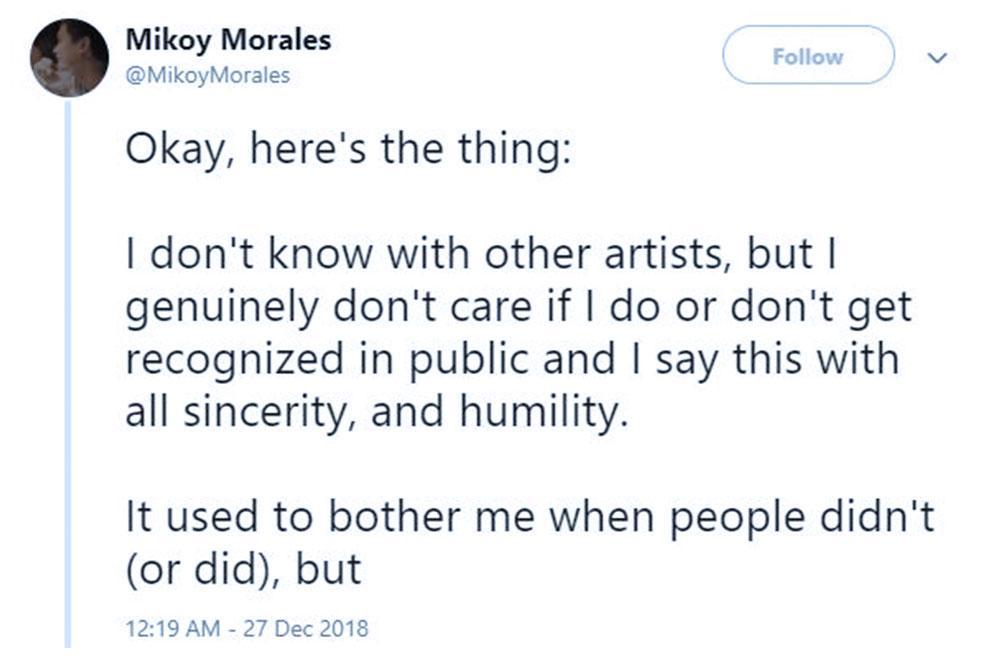 Nag-post ng saloobin si Mikoy Morales sa kanyang personal Twitter account.