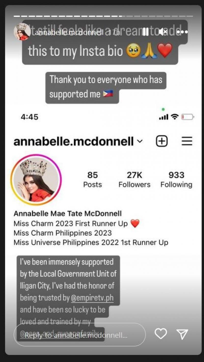 Miss Charm 2023 first runner-up Annabelle McDonnell thanks supporters