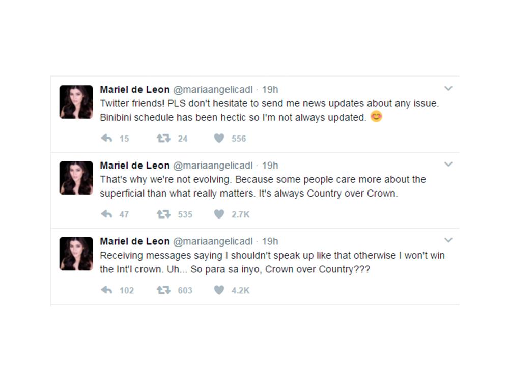 Mariel de Leon who was recently named as the Miss International Philippines certainly isn't afraid to speak up and call out what she believes to be wrong.
