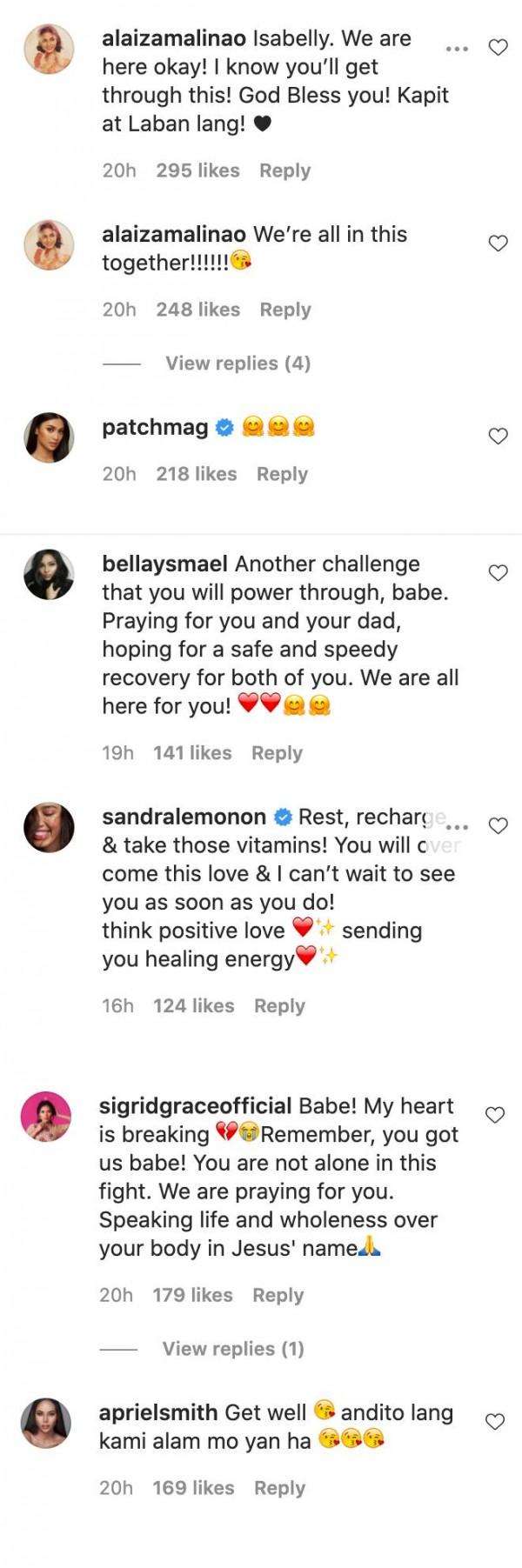 In the comments, candidates of the Miss Universe Philippines and its alumna sent their message of encouragement to the beauty queen.