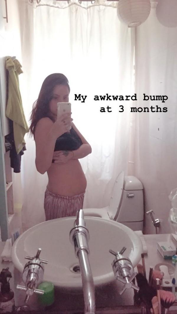 Aniya sa Instagram story, “My awkward bump at 3 months”