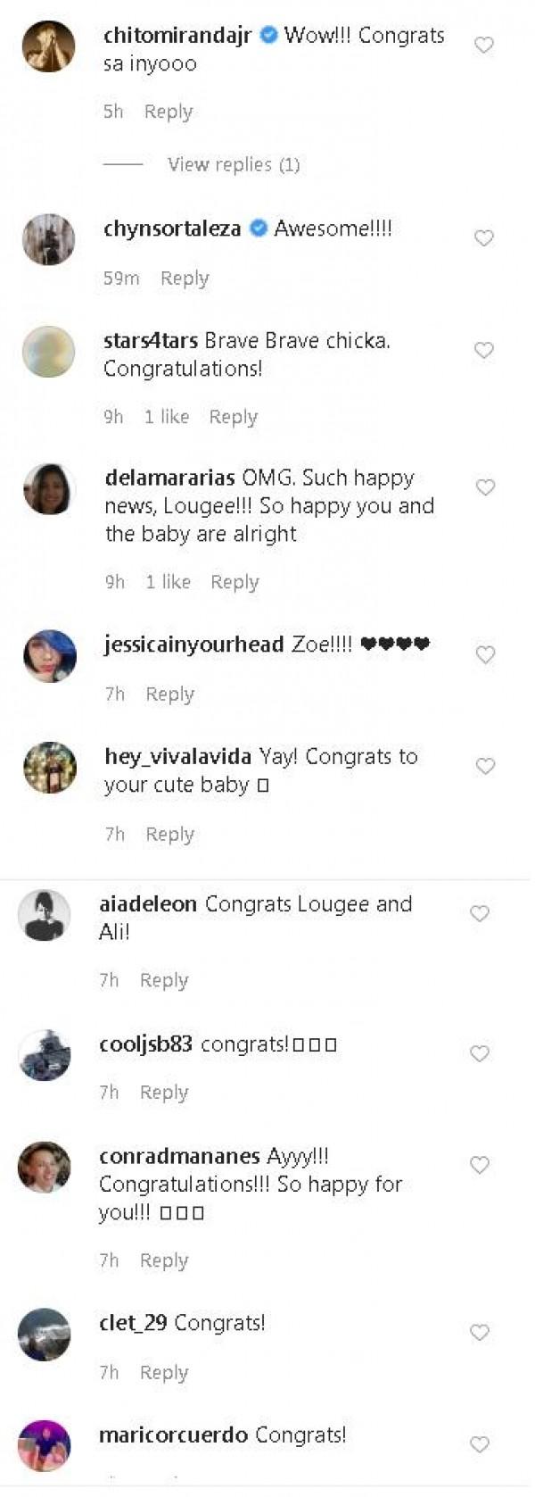 Lougee and Ali's friends from the music industry such as Chito Miranda, Chynna Ortaleza, and Aia De Leon gave their sincerest congratulations to the proud parents.
