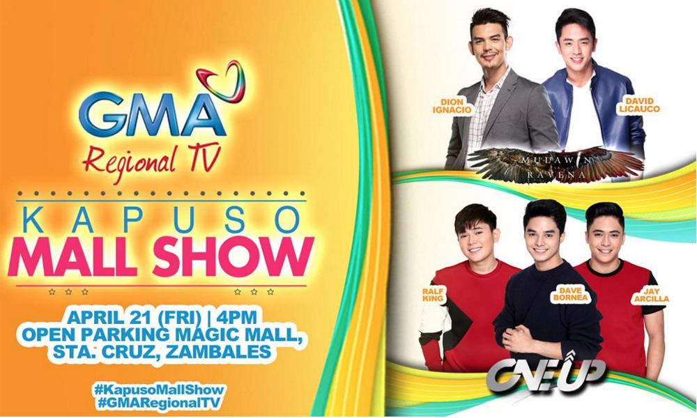 Meanwhile, in Zambales, another set of Mulawin vs. Ravena stars—Dion Ignacio and David Licauco—treat the mall goers at the Magic Mall in Sta. Cruz, Zambales. The Kapuso Mall Show begins at 4 p.m. and joining the fun are One Up members Dave Bornea, Jay Arcilla, and Ralf King.