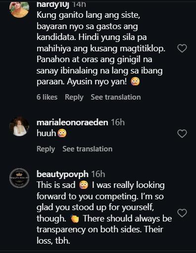 Most of the people in Cristeta's comments were supportive of her, either expressing their sadness at her not competing in the 2026 Miss Universe Philippines pageant or calling on pageant organizations to reimburse candidates for their expenses during the competition.