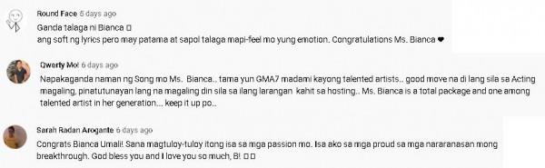 Some even said that "Kahit Kailan" should be the official soundtrack of Bianca's next project.