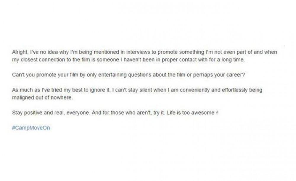 Anang aktor sa Twitter, “Alright, I have no idea why I’m being mentioned in interviews to promote something I’m not even part of and when my closest connection to the film is someone I haven’t been in proper contact with for a long time. Can’t you promote your film by only entertaining questions about the film or perhaps your career?”