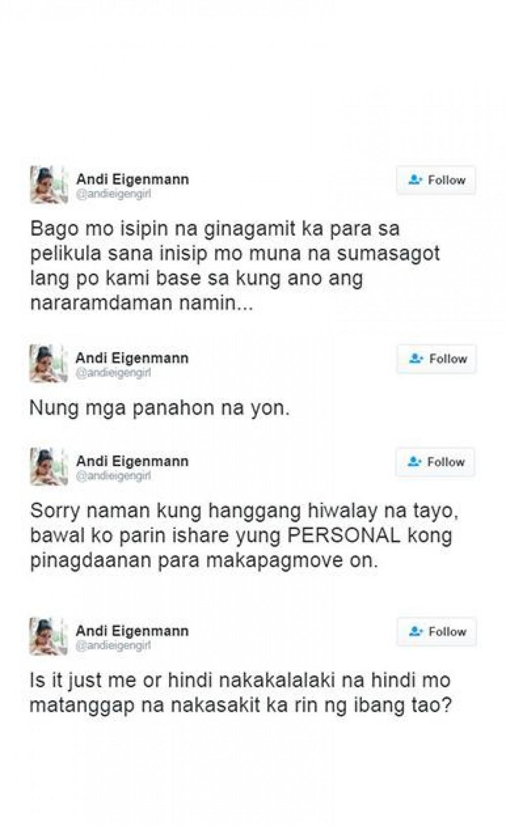Marahil dahil sa tweet na ito, sinubukan ni Andi na magpaliwanag at maglabas ng sama ng loob.