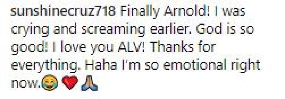 Sunshine replied, “God is so good! I love you, ALV! Thanks for everything. I'm so emotional right now.”