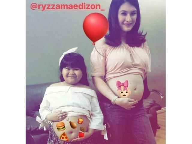 Sa isang post, game na ipinakita ni Mrs. Sotto ang kanyang baby bump upang mag-twinning kay Aleng Maliit Ryzza Mae Dizon.