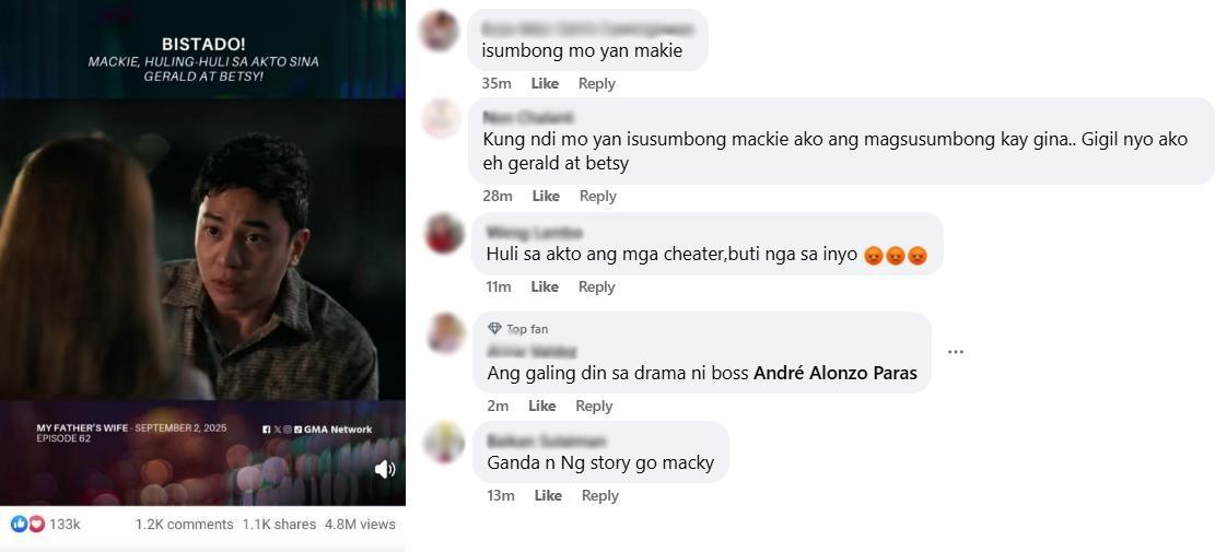 Inabangan ng viewers at fans ang episode ng My Father's Wife kahapon, September 2, dahil nahuli mismo sa akto ni Mackie (Andre Paras) na magkasama at naghahalikan sina Gerald (Jak Roberto) at Betsy (Kazel Kinouchi).