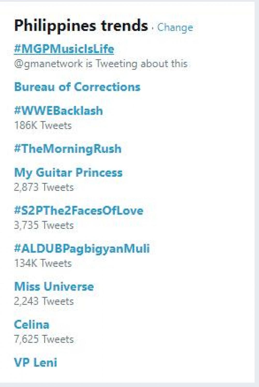 The hashtag MGPMusicIsLife, My Guitar Princess, and Celina made it to the trending list.