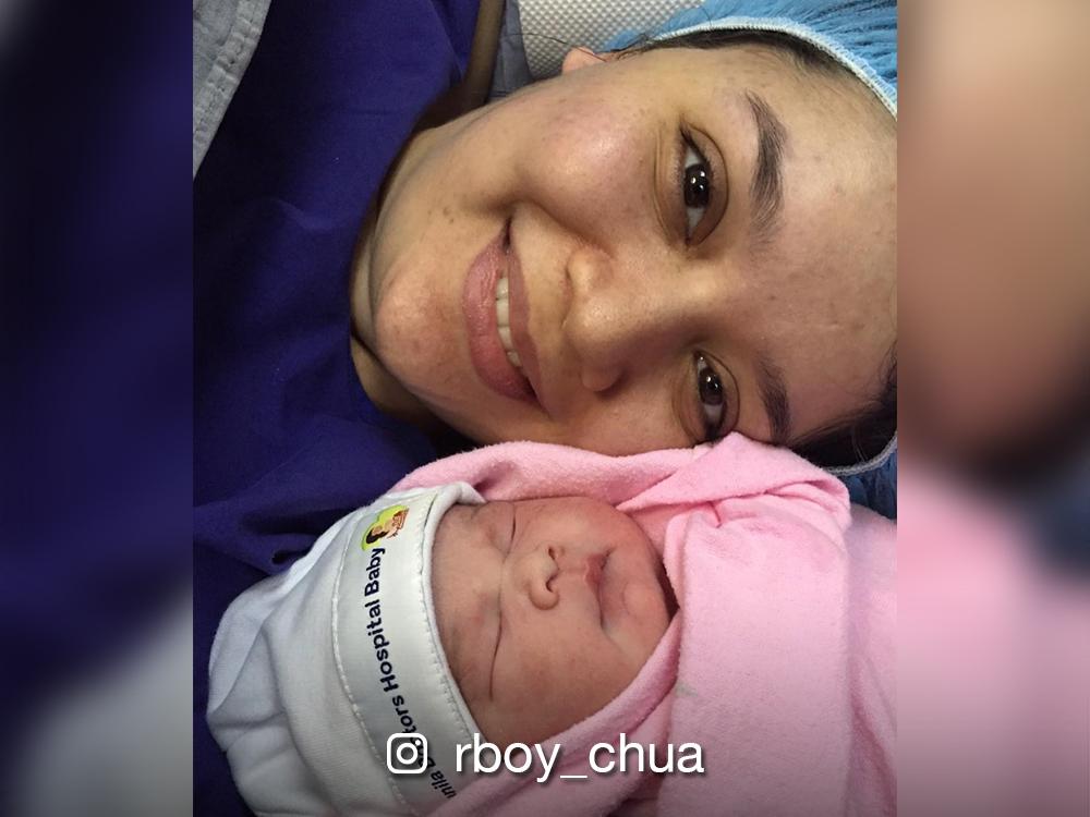 She gave birth to Heather Sloane earlier today, August 27. Her husband Richard Chua lauded her strength. Heather is their firstborn.