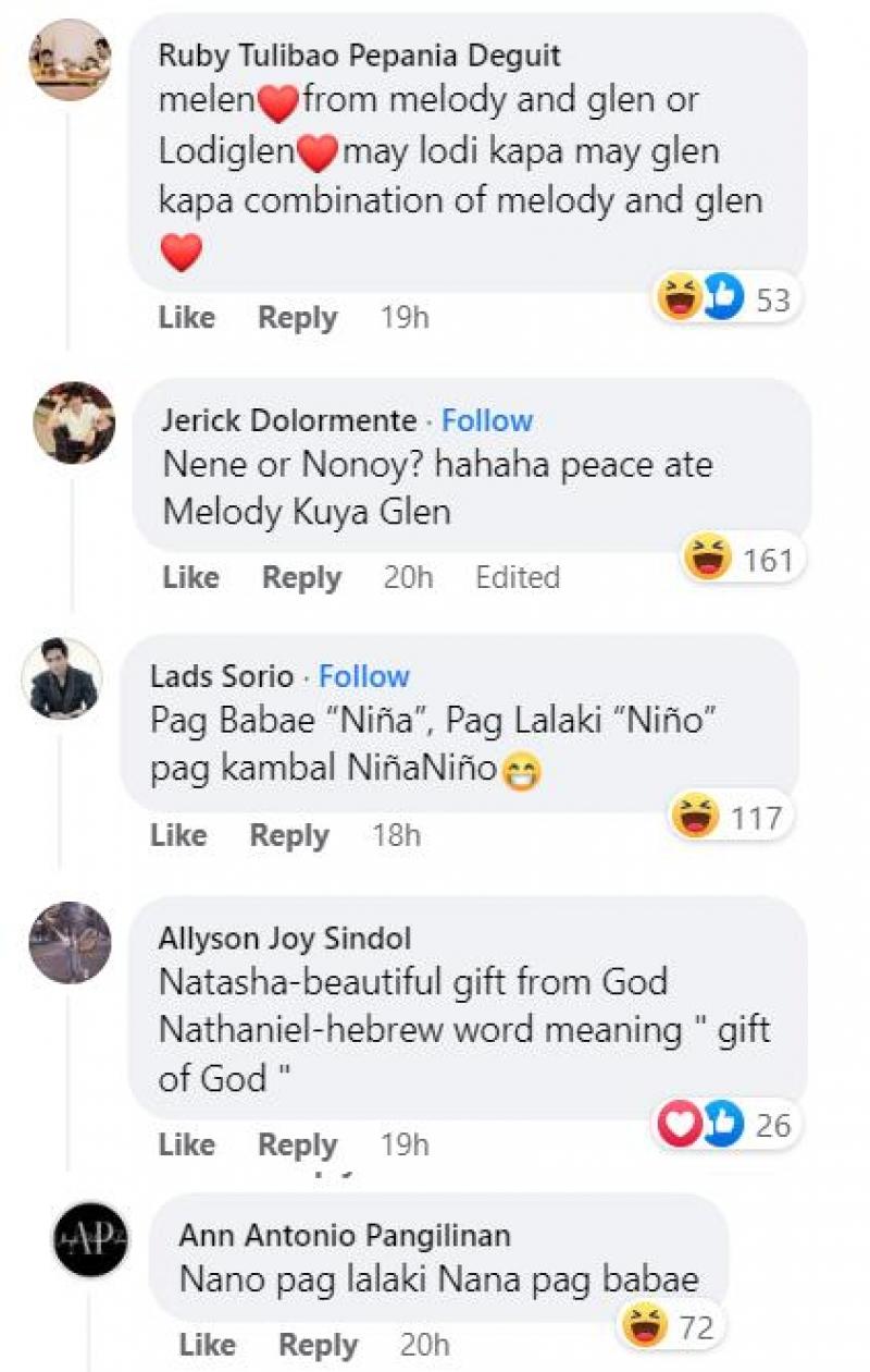 Tingnan ang iba pang nakakatawang mungkahi ng netizens para sa magiging anak nina Glenn at Melody dito: