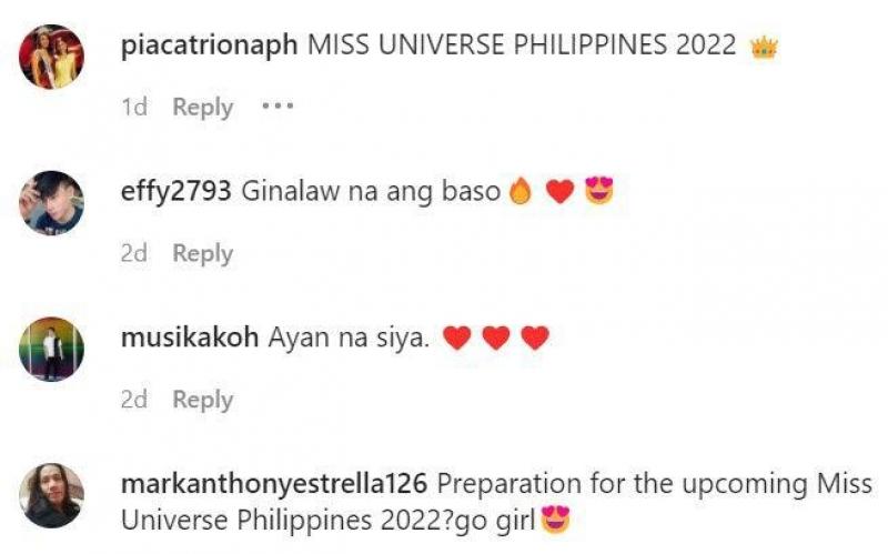 Meanwhile, users @piacatrionaph, @effy2793, @musikakoh, @markanthonyestrella126 all speculated openly in the comments, with one pointblank asking if the workout is “preparation for the upcoming Miss Universe Philippines 2022.”
