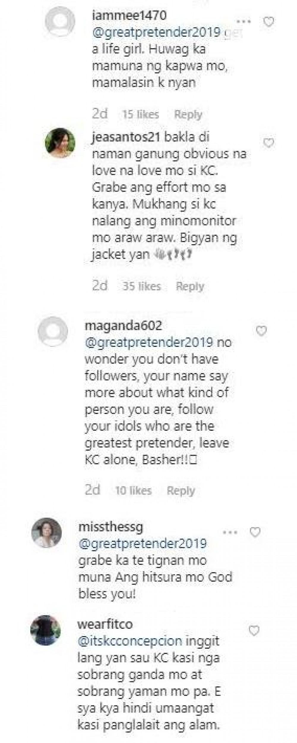 Netizens and supporters of KC Concepcion came to her defense after a basher posted a rude comment on her Instagram page.