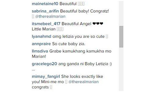 “At sa araw nga na iyon ng Nov 23, tuluyan na talaga tayong naging kumpleto; kasama ng Panginoon, ikaw, ako, at siya- si Maria Letizia. Ngayon, masasabi ko na tayo'y isa nang ganap na pamilya, at ako'y isa nang ganap na ina. Napakasarap ng biyayang ito. #MariaLetizia,” dagdag ni Marian.