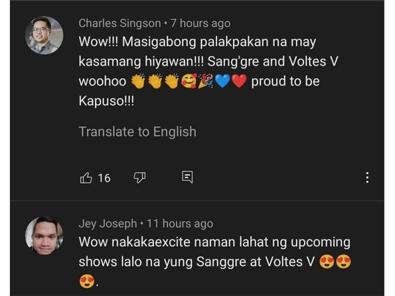“Wow!! Masigabong palakpakan na may kasamang hiyawan!! Sang'gre at Voltes V[: Legacy] woohoo! Proud to be Kapuso!!” ani din ni Charles Singson.