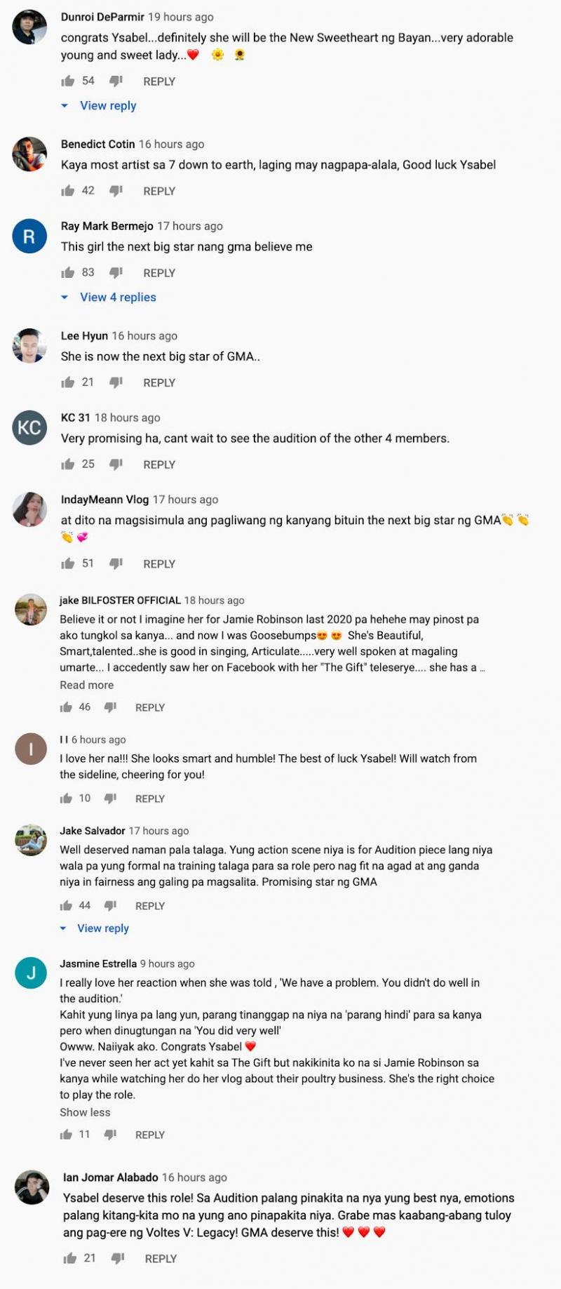 One netizen said, “Ysabel deserves this role! Sa audition pa lang pinakita na n'ya 'yung best n'ya. Emotions pa lang kitang-kita mo na 'yung ano pinapakita n'ya. Grabe, mas kaabang-abang tuloy ang pag-ere ng 'Voltes V: Legacy!' GMA deserves this!”
