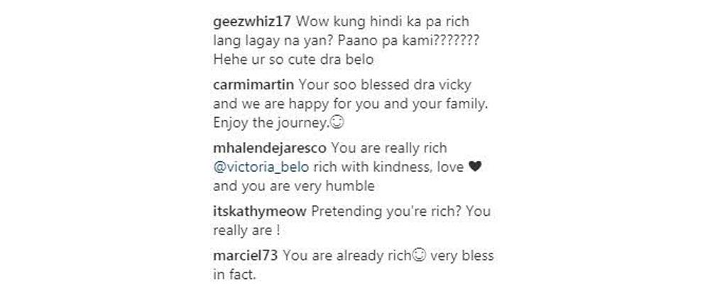 Netizens quickly wrote their reactions on the doctor’s comments section after watching the said video. Some described Vicki as "cute” for her post and said that she’s not only rich but also blessed.