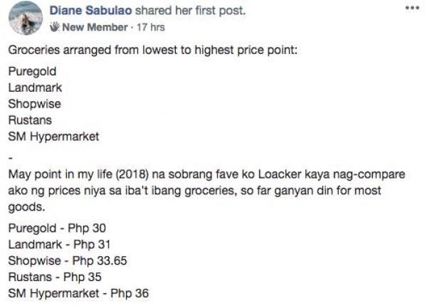 And, there was also a post comparing the prices of certain goods in different supermarkets.