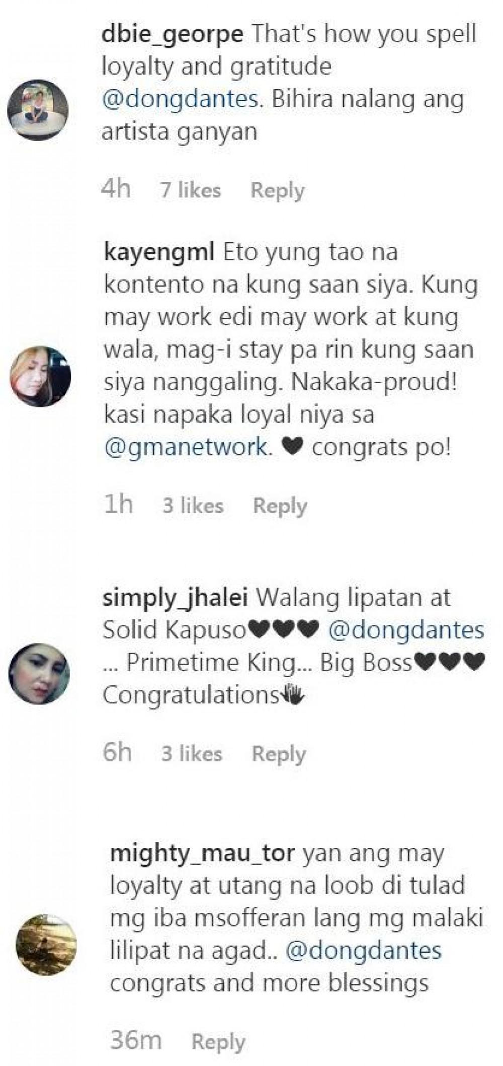 Mababasa ang ilang comments sa gratitude post ni Dong sa kanyang Instagram.