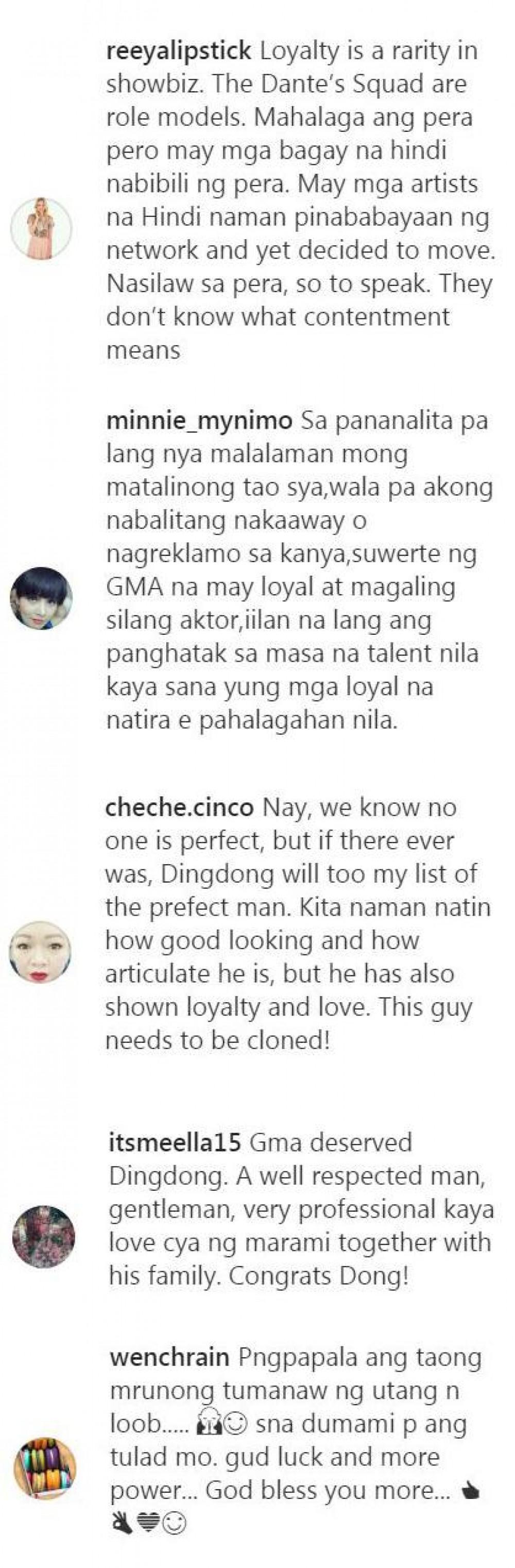 "Pati nga head ng security kilalang-kilala si Dingdong na parang anak. Punong-puno ang puso ni Dingdong sa pasasalamat, puno ng pagmamahal ang kanyang mensahe, at ipinakita niya ang isang virtue ng isang Dingdong Dantes ang loyalty. So, GMA's precious son will always be where he [belongs]."