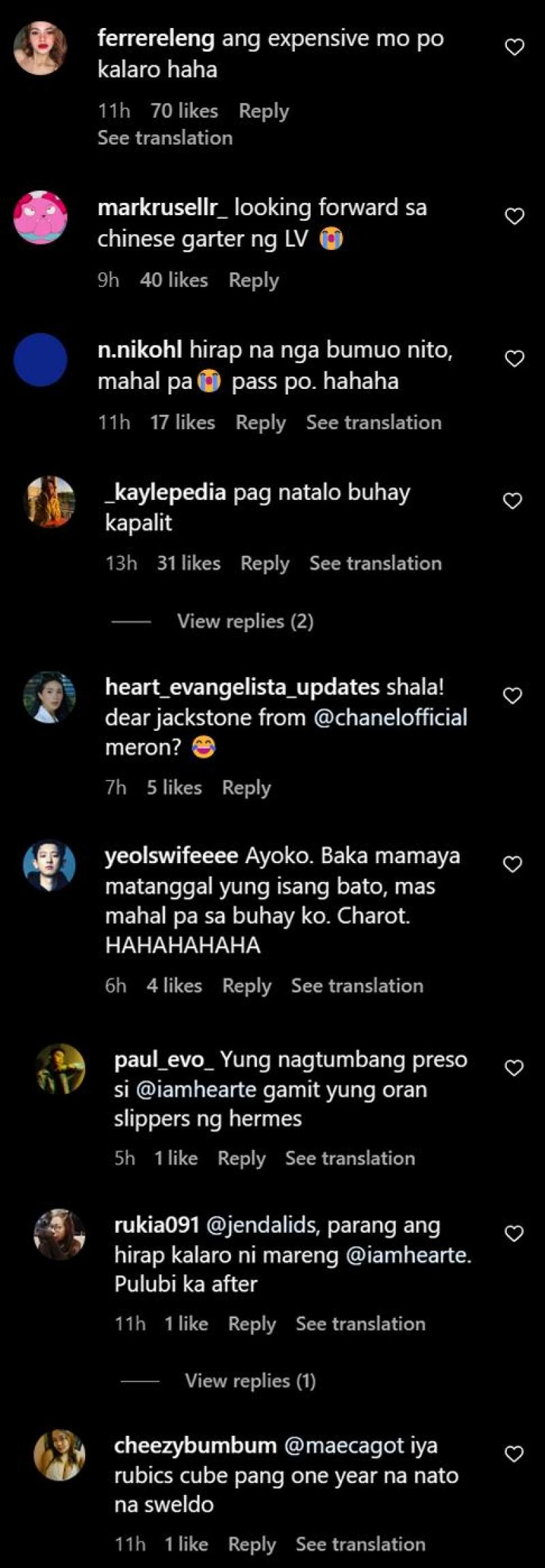 It's yet another round of good-natured teasing that is headed toward international fashion and style icon Heart Evangelista as she once again displays an unexpected designer accessory on her Instagram account.