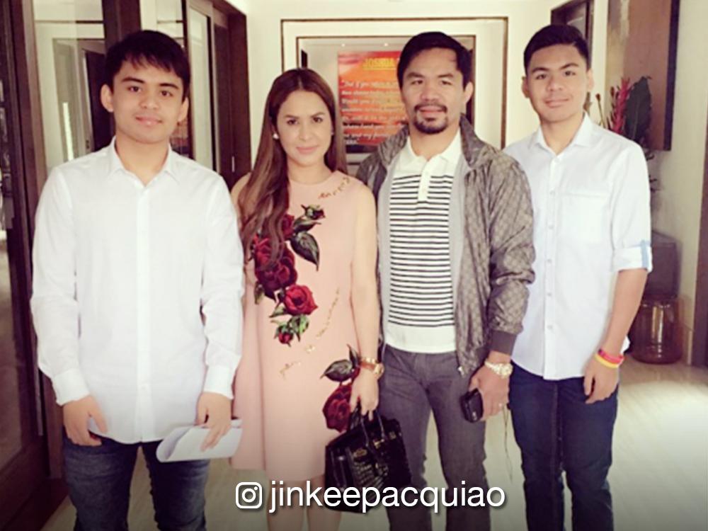 Proud parents sina Pambansang Kamao Manny Pacquiao at ang kanyang asawa na si Jinky sa pagsalubong sa kanilang anak na si Jimuel bilang endorser at model ng Blue Water Day Spa.
