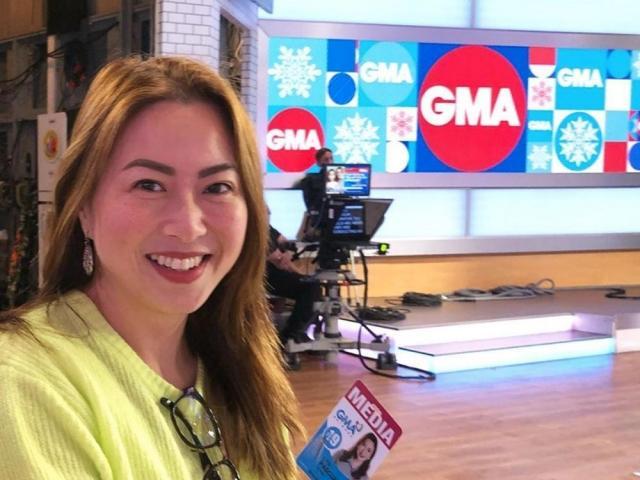 The Unang Hirit host decided to celebrate in none other than the set of Good Morning America with her Kapuso Media ID in tow.