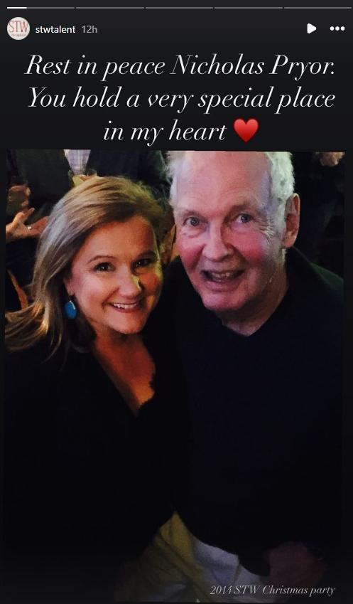They also shared a photo of Nicholas and Susan on their Instagram story with their message, "Rest in peace Nicholas Pryor. You hold a very special place in my heart."