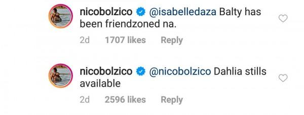 Like a strict father to his daughter, Nico replied, "@isabelledaza Balty has been friendzoned na."