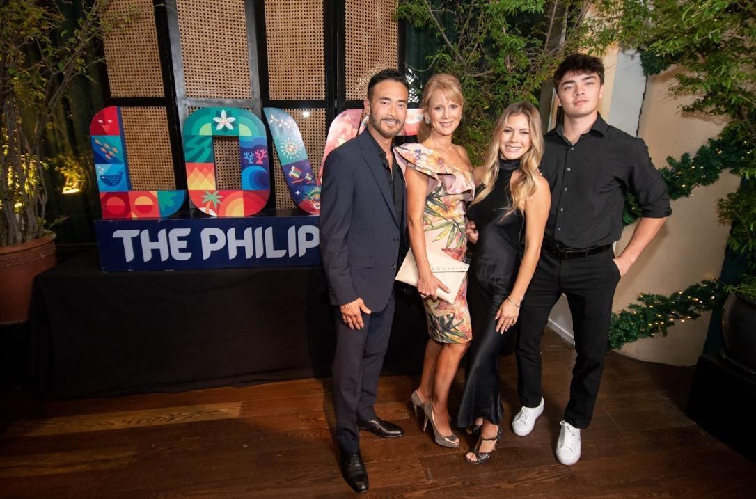 Mark Dacascos and family pose in front of the Love the Philippines logo for the cameras.