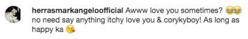 Mark, meanwhile, responded to the post with an equally sweet message, “Awww love you sometimes? [N]o need say anything itchy love you & corykyboy! As long as happy ka.”
