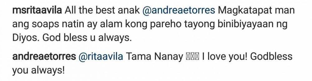 Sa isang Instagram post ni Andrea, nag-iwan ng positive comment si Rita na sinagot din naman ng Kapuso leading lady.