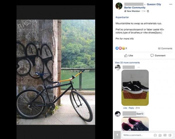 Sample post in the Quezon City barter community | Source: Quezon City barter community (Facebook)
