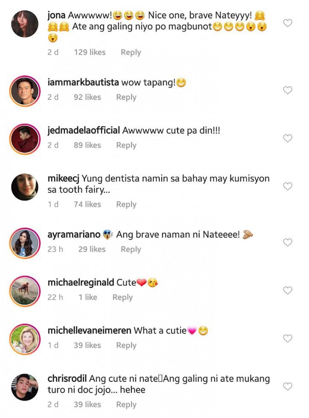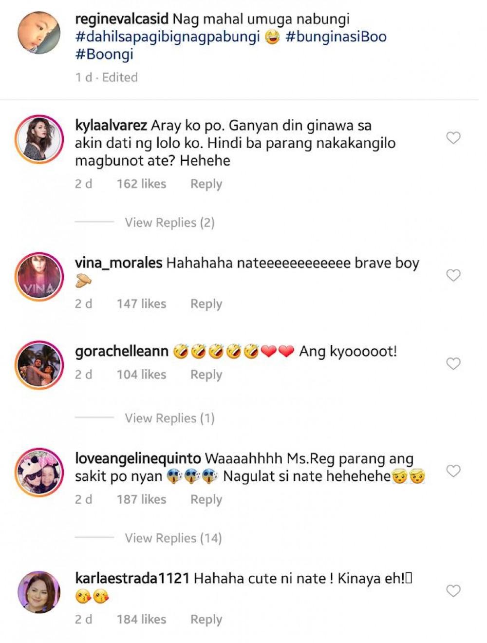 Napahanga naman si Vina Morales sa katapangan ni Nate. Comment ni Vina, “Hahahahaha nateeeeeeeeeeee brave boy.”