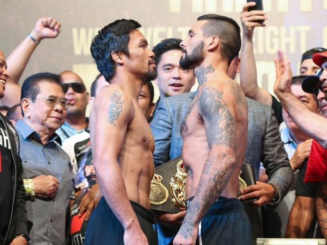 Ang timbang ni Pacman ay 146 pounds samantalang 146.7 pounds naman ang makakalabang niyang si Matthysse. Nang umakyat ang dalawa sa stage, kapansin-pansin na mas malaki ang katawan ng Argentine boxer.