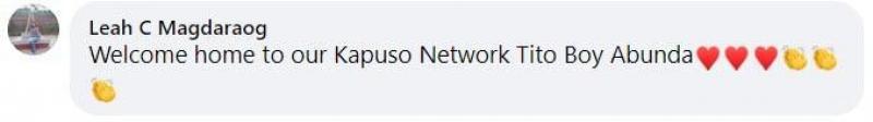 “Welcome home to our Kapuso Network Tito Boy Abunda,” pagbati ng isang netizen.