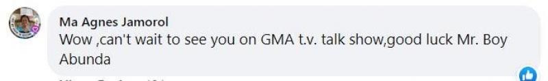 “Wow, I can't wait to see you on the GMA talk show. Good luck Mr. Boy Abunda,” mensahe naman ng isang fan.
