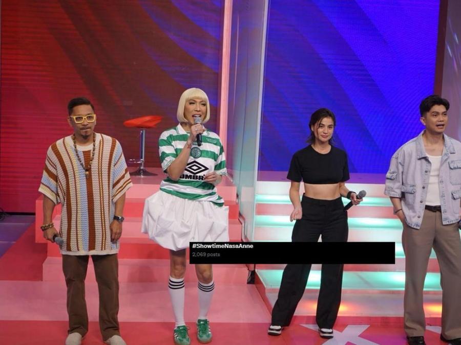 "Sabi sa dressing room,' Huwag natin tuturuan si Anne. 'Di niya inabot 'yung dance. Pagpasok ko [sa studio], tinuturuan niya si Anne," bungad ni Vice tungkol kay Vhong. "Sa iyo 'yung ideya. hindi nga namin tinuruan. Ang ending siya 'yung mabait."
