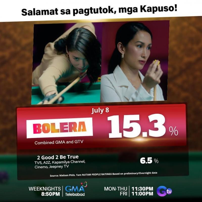 Sa episode na ito nakapagtala ng pinakamataas na ratings ang Bolera, kung saan umabot ito sa 15.3 percent base sa NUTAM People Ratings ng pinagkakatiwalaang market research firm na Nielsen Philippines.